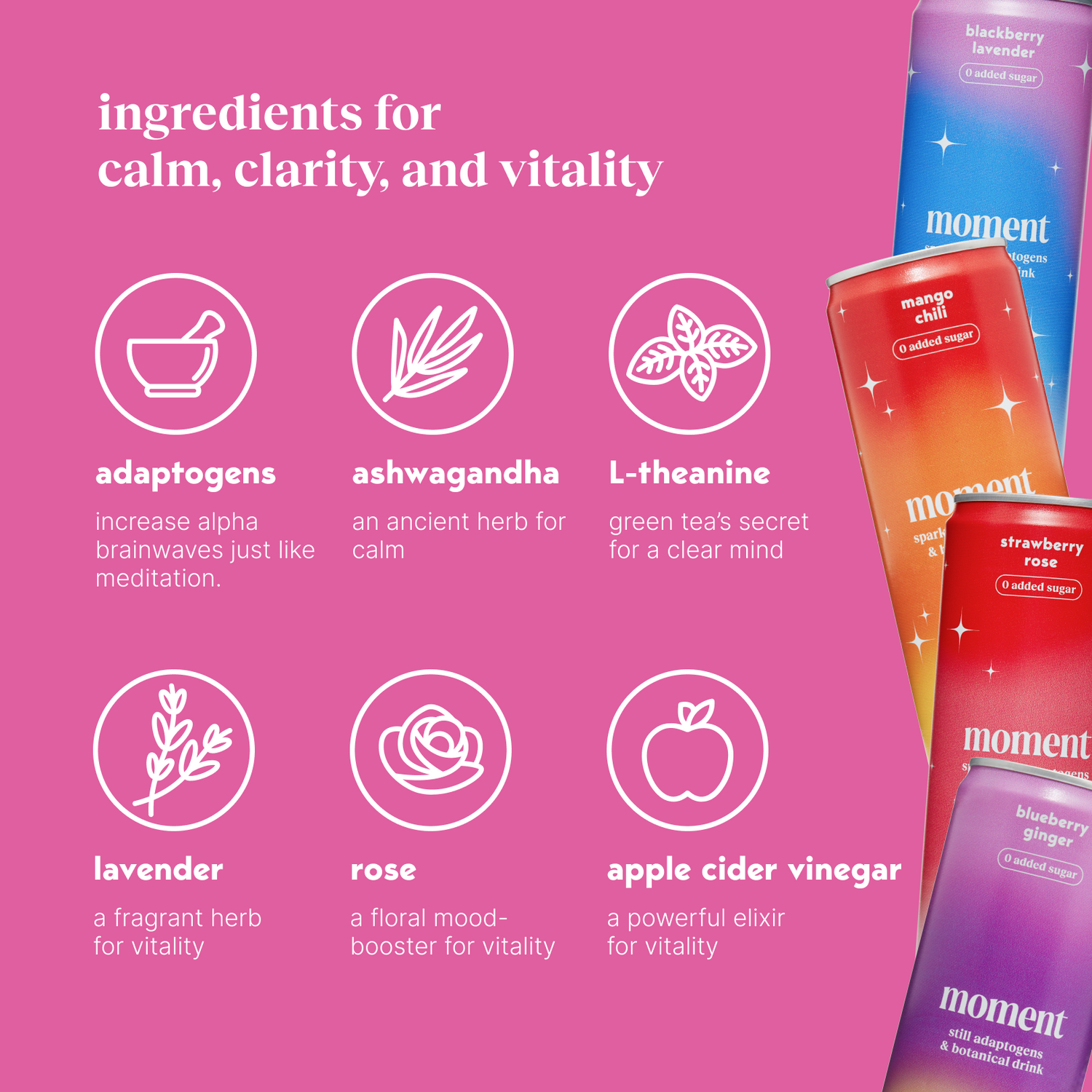 The only way to sip all four of our bestsellers. Each can combines premium ingredients with powerful botanicals to help you find balance throughout your day. From bright citrus to sweet berries, exotic fruits to calming herbs, every sip offers a new way to pause and reset.
