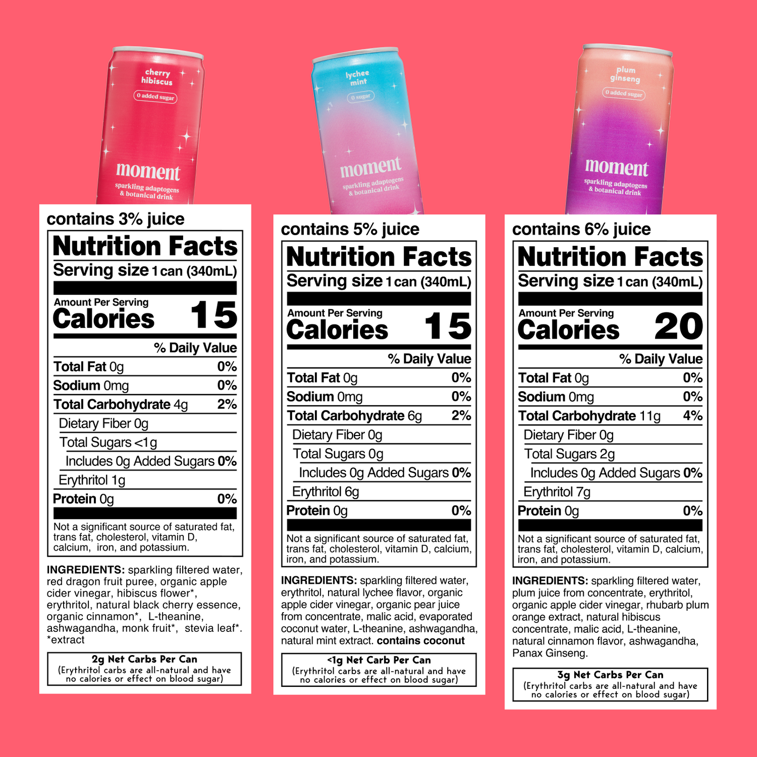 Find your favorite flavor of calm with three bestselling sparkling flavors. Flavors rotate seasonally and include: