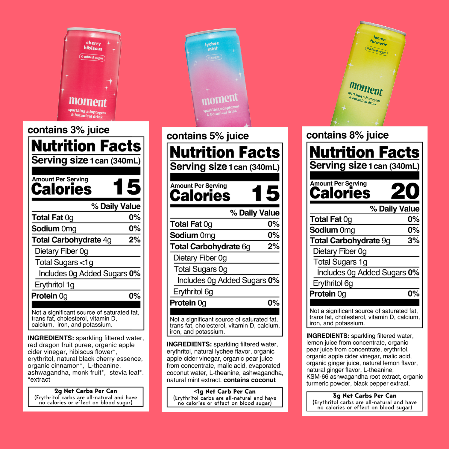 - Natural botanicals such as ginger, hibiscus, rhubarb, and jasmine