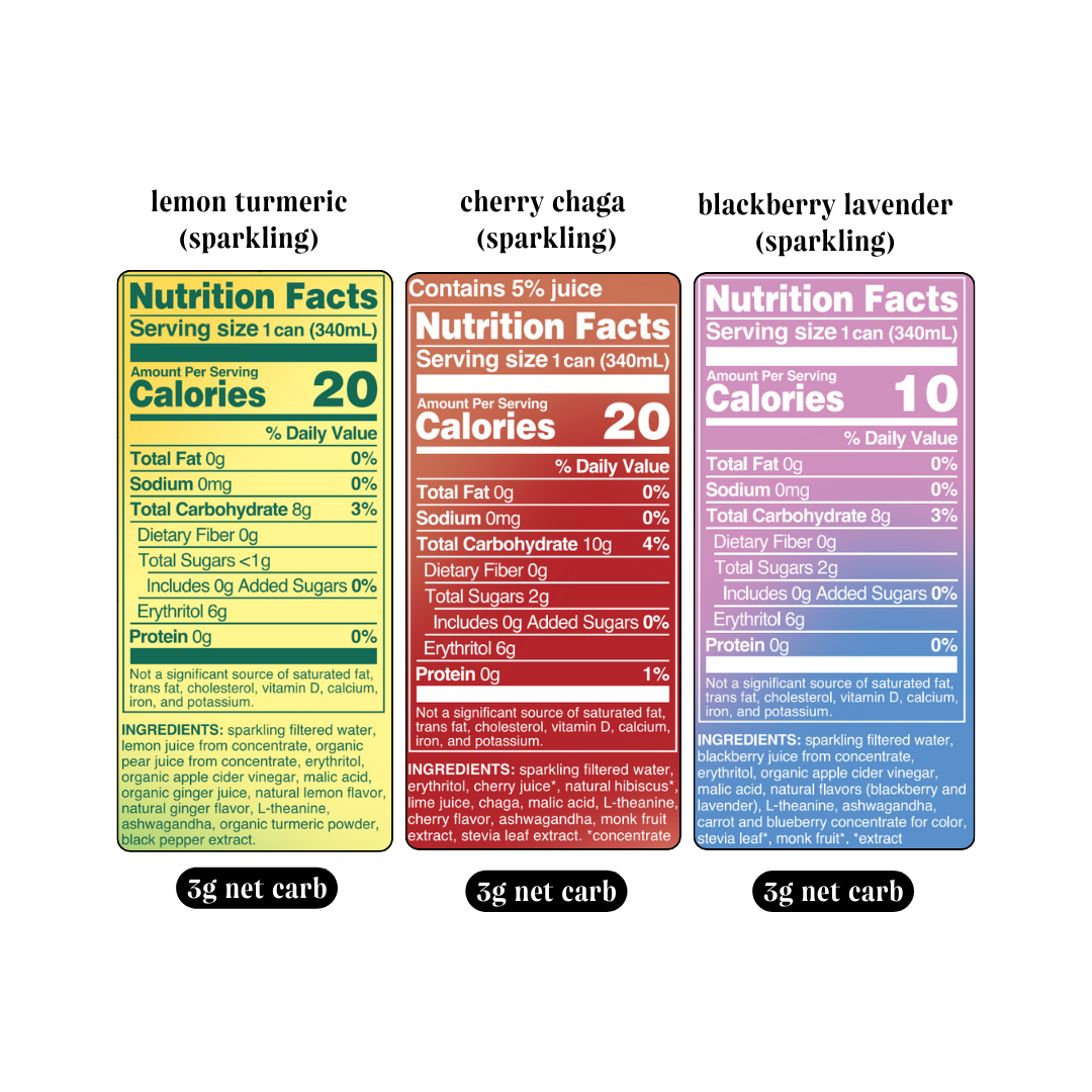 Current flavors in the gift-box: blueberry ginger, blood orange, spiced mango, cherry hibiscus, lychee mint, and plum ginseng