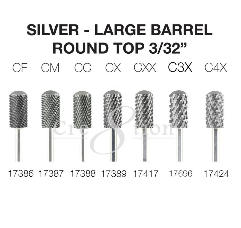 Cre8tion Carbide Large Barrel Round Top 3/32" Silver - Professional Nail Drill Bit