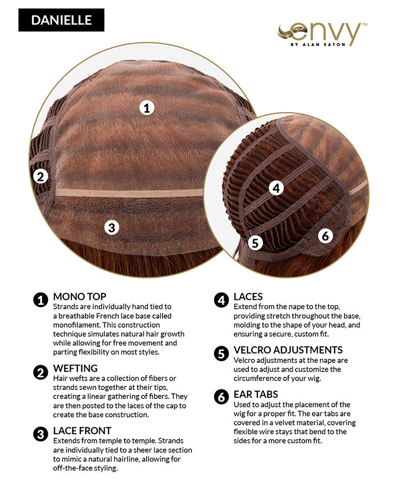 Danielle is constructed with mono top and machine made Sides and back Wear it straight or add a touch of curl to reflect your own personality.