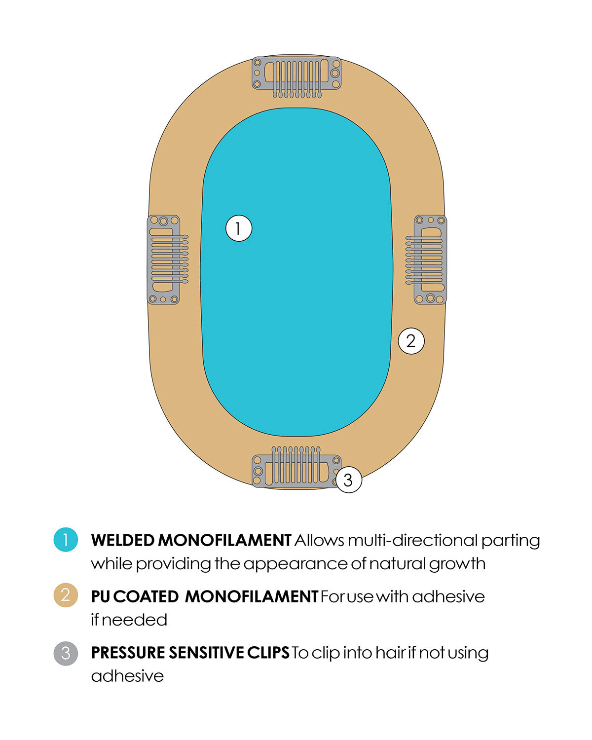- Base Construction: Single Monofilament with PU Perimeter