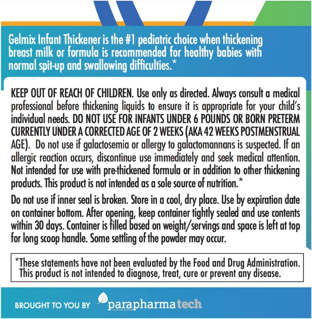 This infant thickener mixes easily with warm formula or expressed breast milk, creating a smooth consistency that reduces spit-up and promotes safer feeding. Unlike rice cereal or other starch-based thickeners, Gelmix is derived from organic carob bean gum, providing a more natural and easily digestible option. Recommended by pediatricians and healthcare professionals, it’s suitable for full-term infants over 42 weeks corrected age and weighing more than 6 pounds.