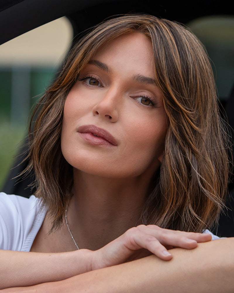 Hollie is casual sophistication. With a short shoulder length and subtle, natural wave, Hollie gives effortless charm. Trending bangs and high heat fiber ensure versatility, while low Perma tease provide a natural appearance. Hollie is your everyday essential for understated elegance.