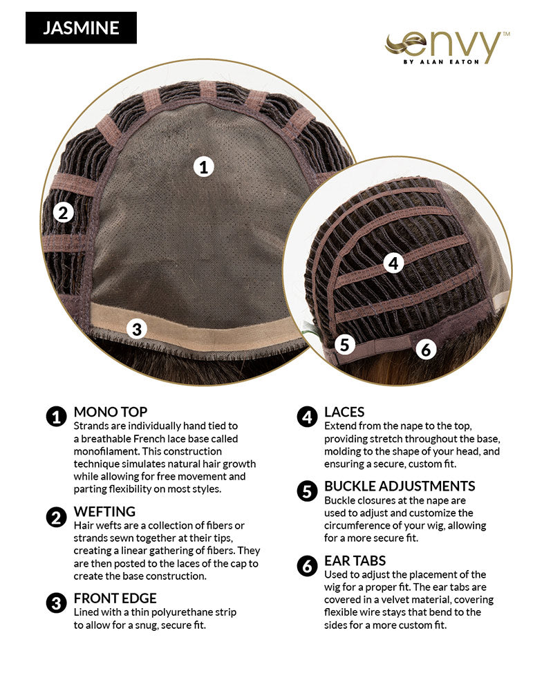 Jasmine by Envy is a modern twist on a classic timeless style. This shoulder length bob style has added sophistication with its texture and long layers. Easy and comfort made supreme in Jasmine with its mono top construction. Perfect for the novice and oh so easy for that first time wearer or the most experienced stylist.