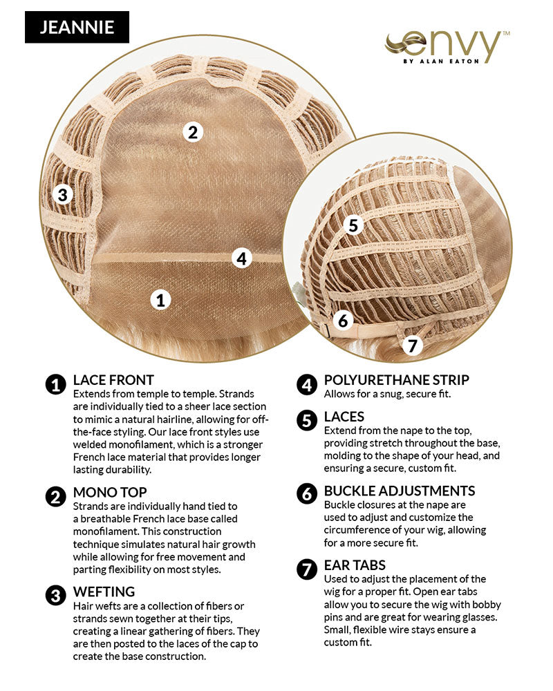 Jeannie by Envy offers fully hand tied features with mono top construction, lace front technology and hand tied Sides and back. This chic pixie cut offers styling flexibility with its sophisticated silhouette. Comb this style to the Sides or off the face and create your own unique fashion statement. Lightweight and fashion forward elegance from Envy Wigs.
