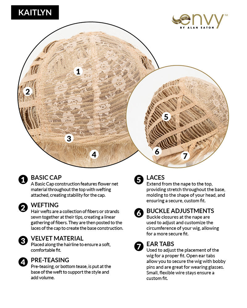 Kaitlyn offers Open Top construction. Open Top styles are unexpectedly lightweight and airy. A delicate layer of gossamer lies softly against the scalp, allowing air to circulate freely.