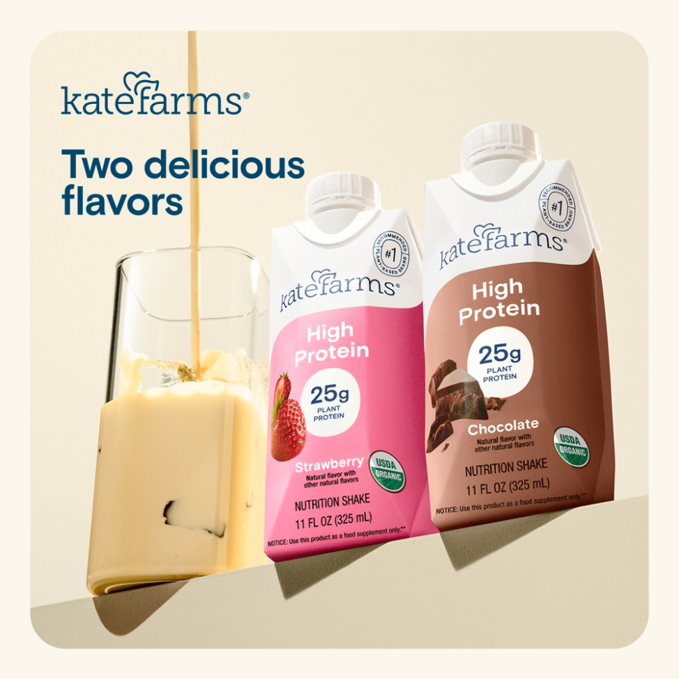 A: No — the Nutrition Shake (including the strawberry flavor) is for oral consumption only. Other Kate Farms products (not this shake) may flow through tubes.