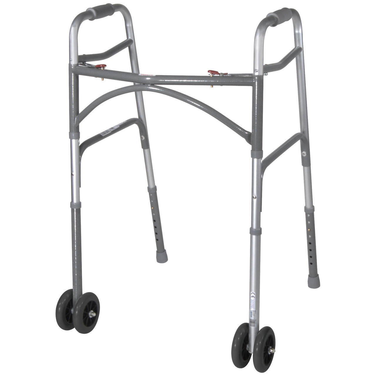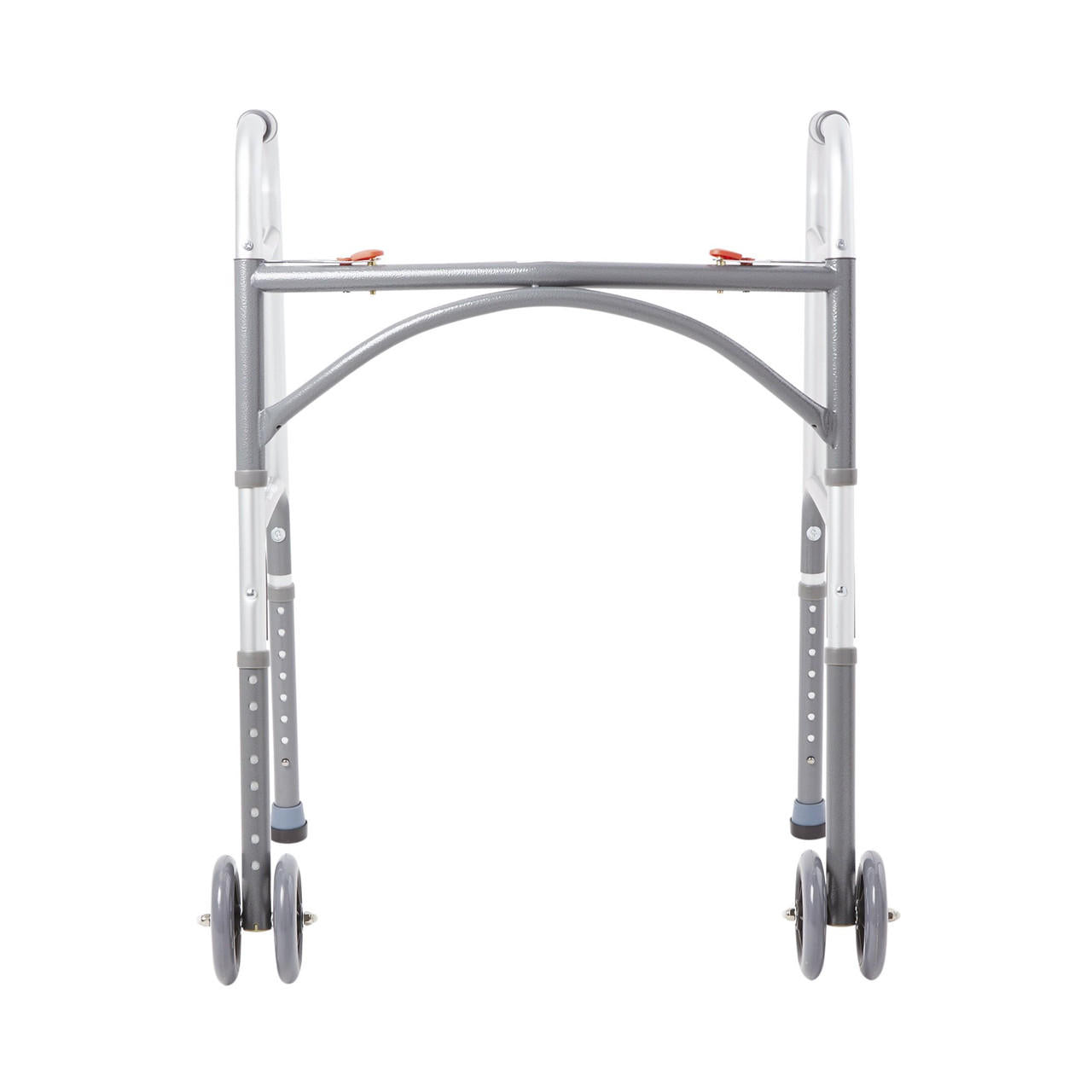 • 5-inch front wheels and improved rear glide caps allow for walker to slide easily and smoothly over most surfaces.