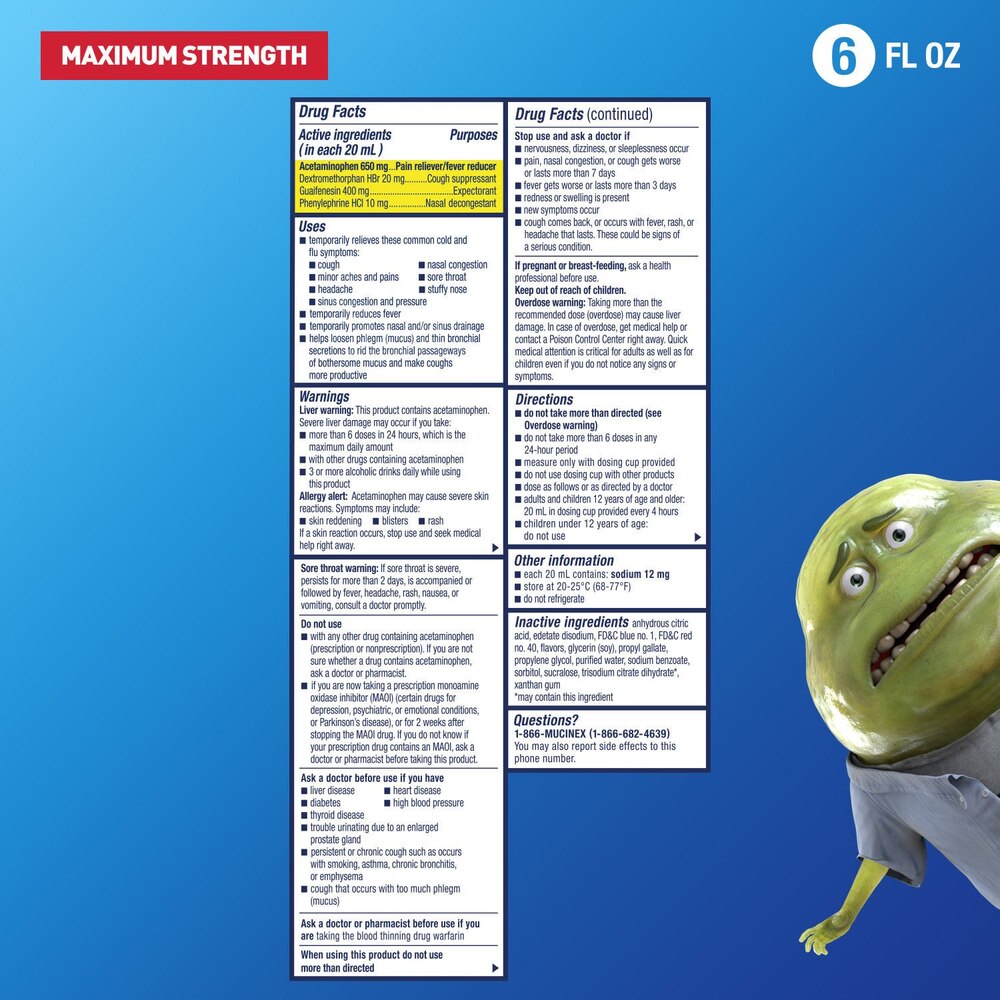 Mucinex Fast-Max Cold, Flu and Sore Throat Relief Liquid, Maximum Strength, 6 fl oz