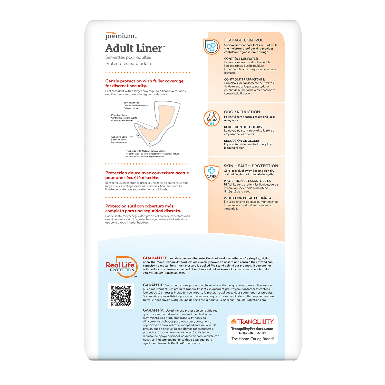 With their reliable leak protection and odor control properties, Tranquility Adult Liners offer peace of mind throughout the day. The soft and gentle surface is kind to your skin, minimizing the risk of irritation or discomfort.