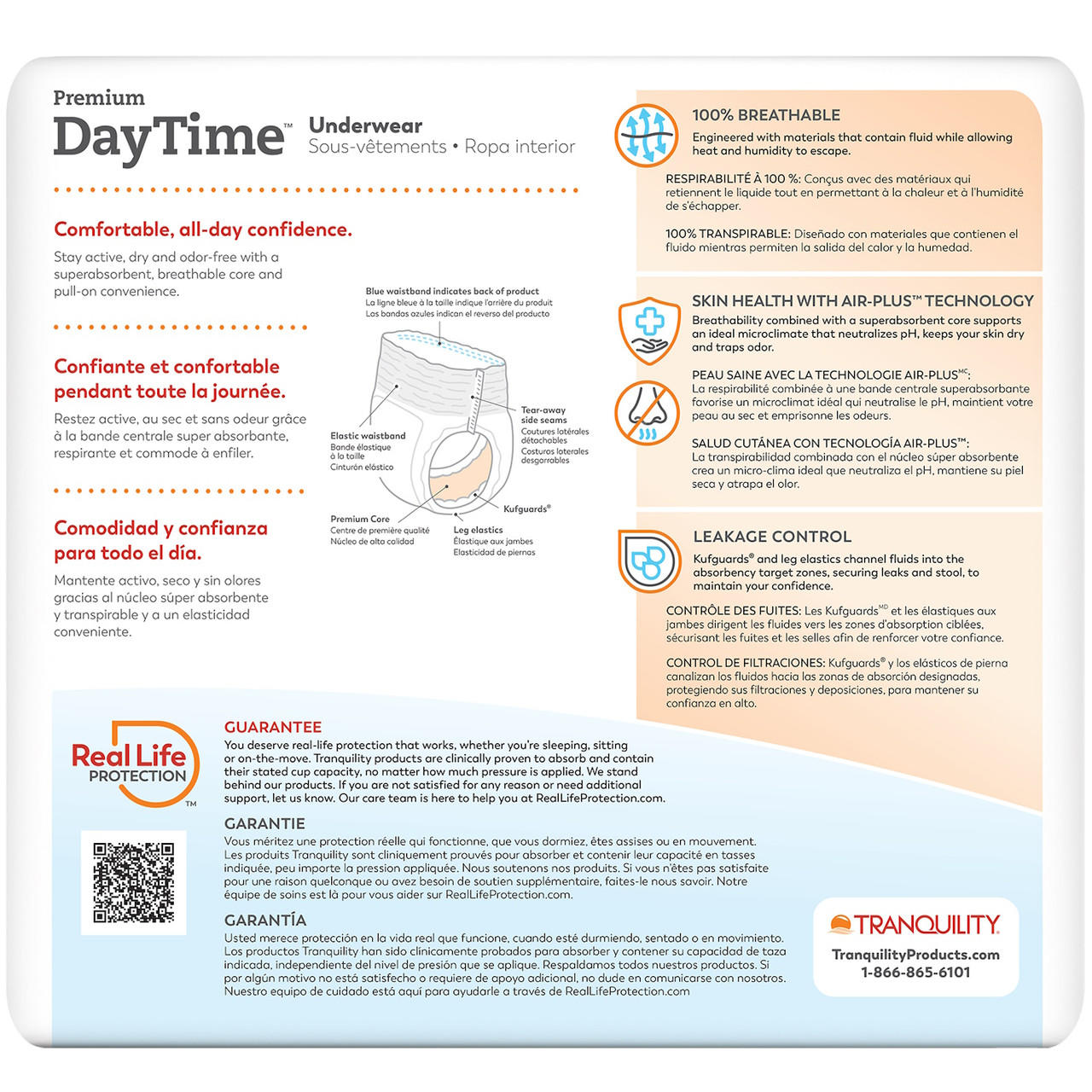 Designed with cutting-edge technology, Tranquility Premium DayTime Pull-Up Underwear delivers exceptional absorption, ensuring maximum security against leaks and odor throughout the day. With a capacity of 25 oz. (740ml) these diapers are suitable for moderate to heavy incontinence.