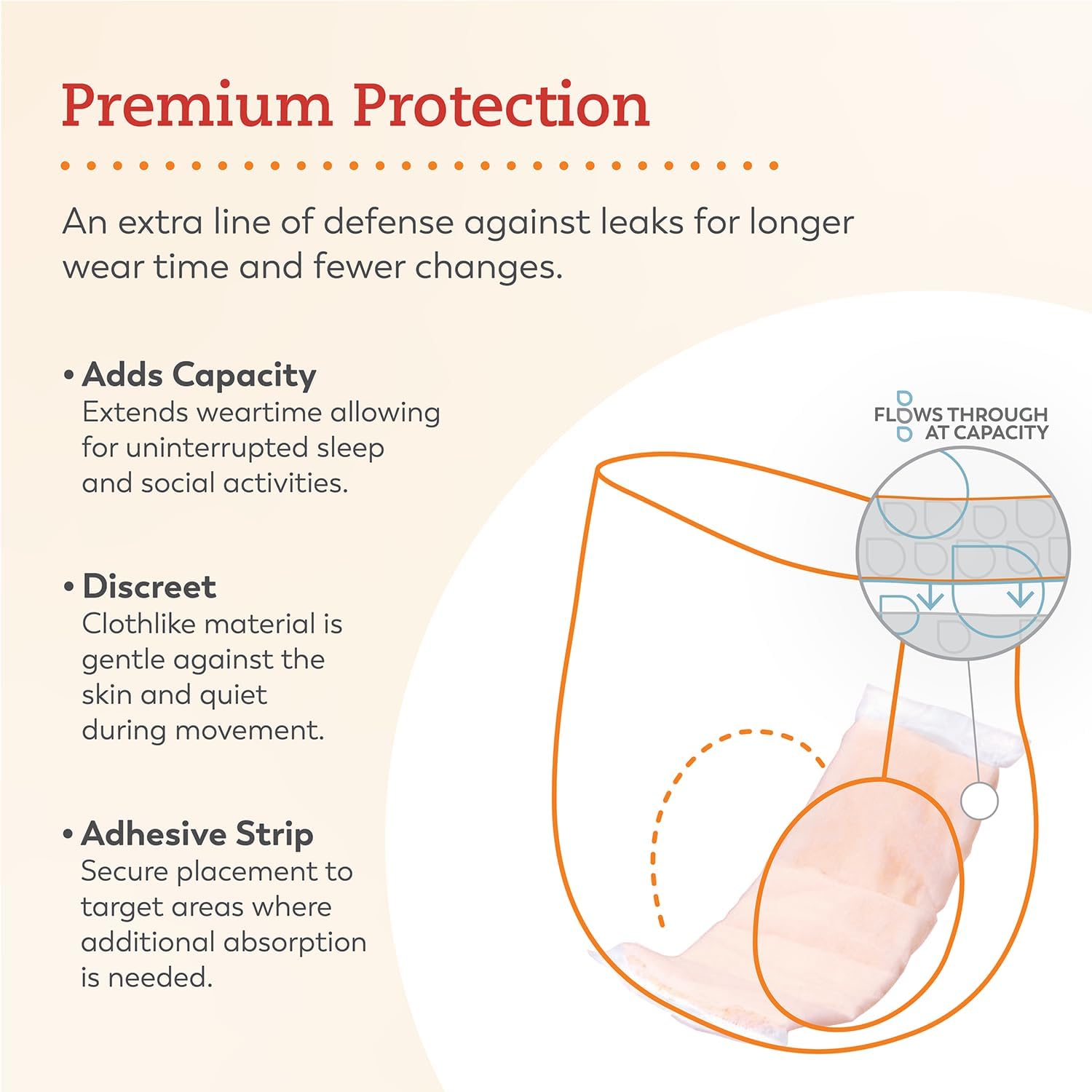 TopLiners have a flow-through design, meaning once the pad fills, liquid passes into the disposable brief underneath—significantly increasing total absorbency.