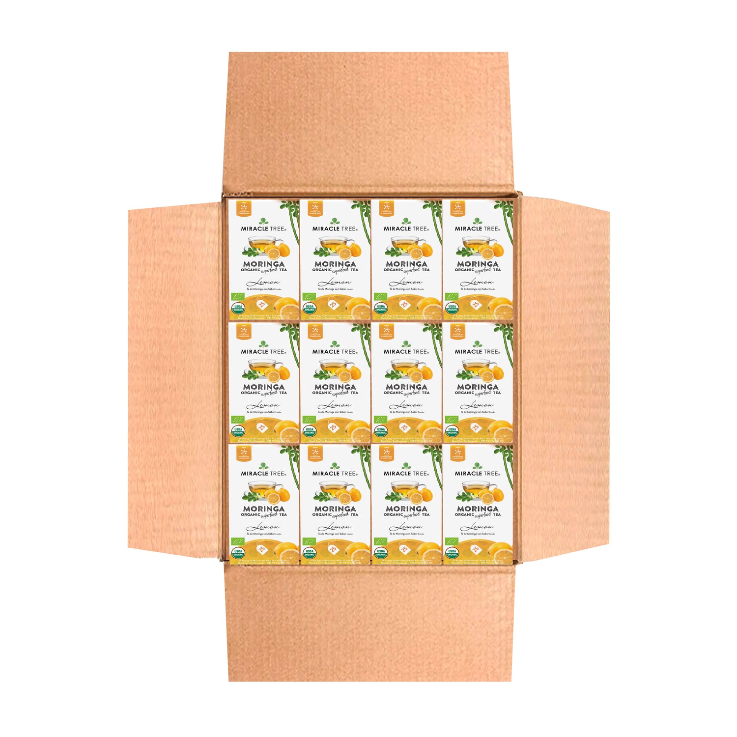 25 WRAPPED TEA BAGS, ORGANIC MORINGA LEAF, NON-GMO, CAFFEINE-FREE, & ABSOLUTELY DELICIOUS. ORGANIC MORINGA TEA, LEMON: Miracle Tree's Lemon & Organic Moringa Superfood Tea is a soothing blend of Moringa dried leaves and lemon tastes great and comes packed with Moringa goodness. Feel calm and relaxed after drinking this tea.