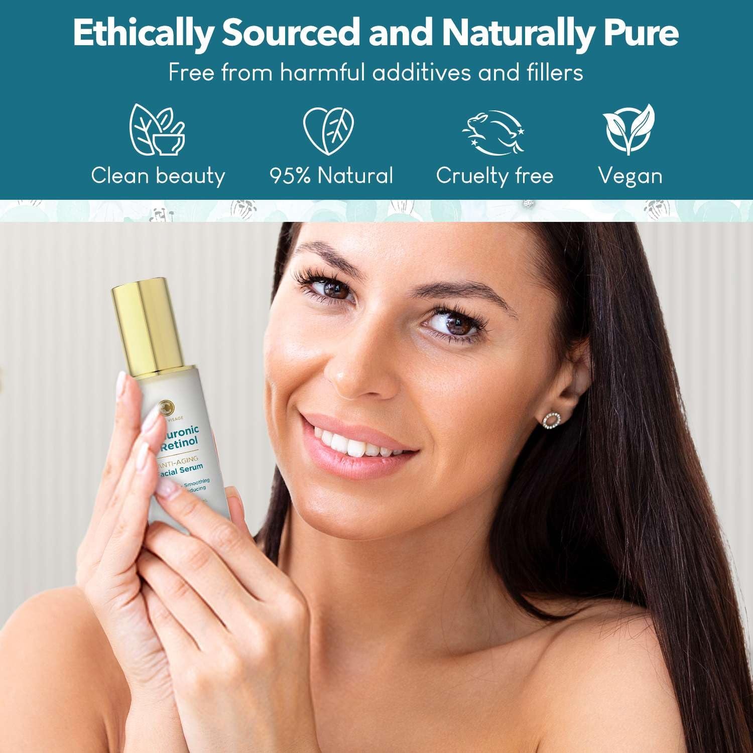 Hyaluronic Acid & Retinol Serum - Revitalizing Anti-Aging, Radiant Glowing Complexion, Wrinkle Reduction - Dermatologist Tested, Korean Skin Care, Clean Beauty - 1.69 Fl. Oz