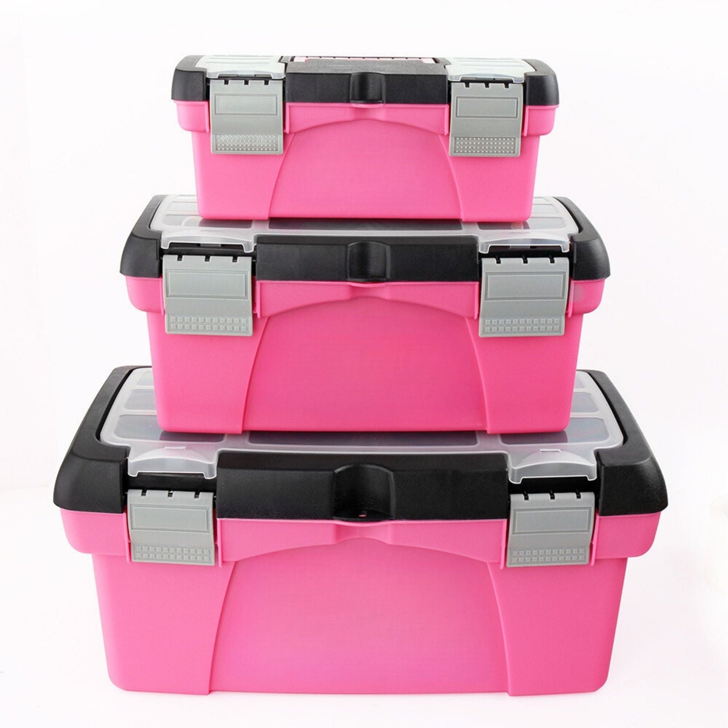 A TOOL BOX FOR EVERY NEED. Use them for tool storage, to organize craft supplies, small toys, fishing tackles, paints, pens, brushes, and more. The smaller box can even be used as a lunch box. The pink color is fun and attractive to bring anywhere.