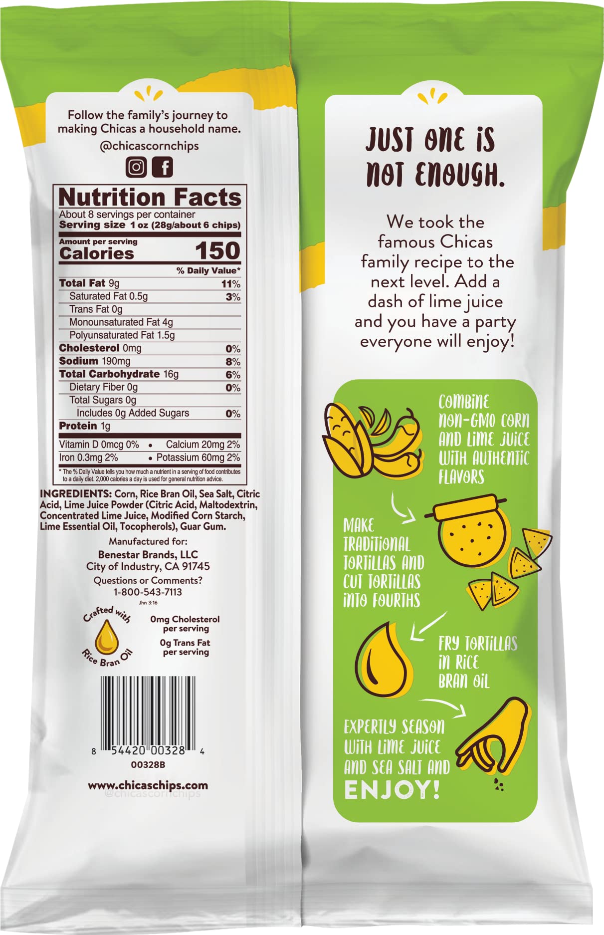 Chicas Tortilla Chips, White Corn Tortilla Chips Lime, Gluten Free, Vegan, Non-GMO, For Dips, Spreads & More, 7.5 Ounce Bag (Pack of 1)