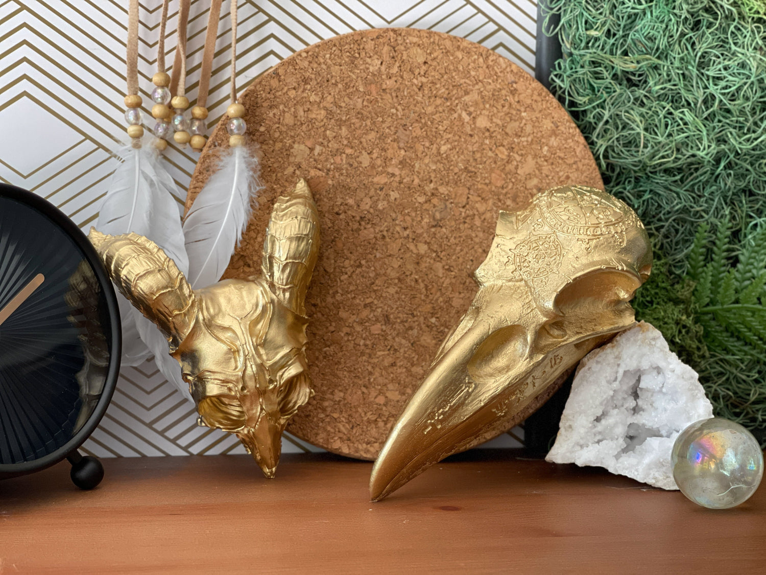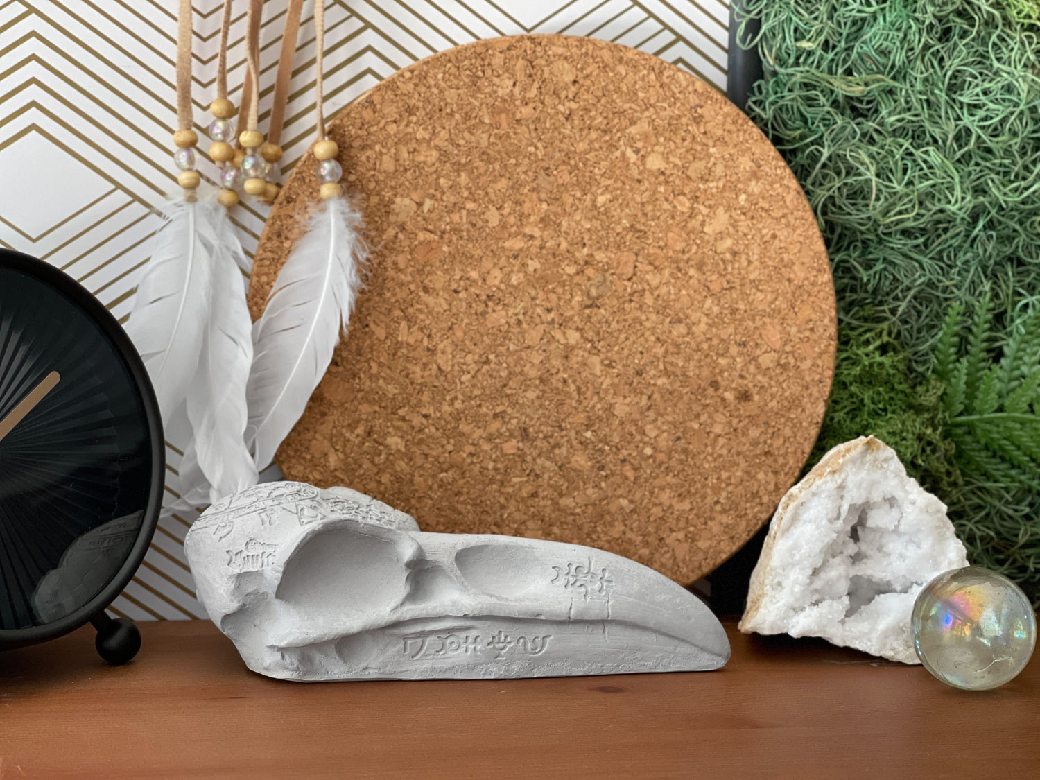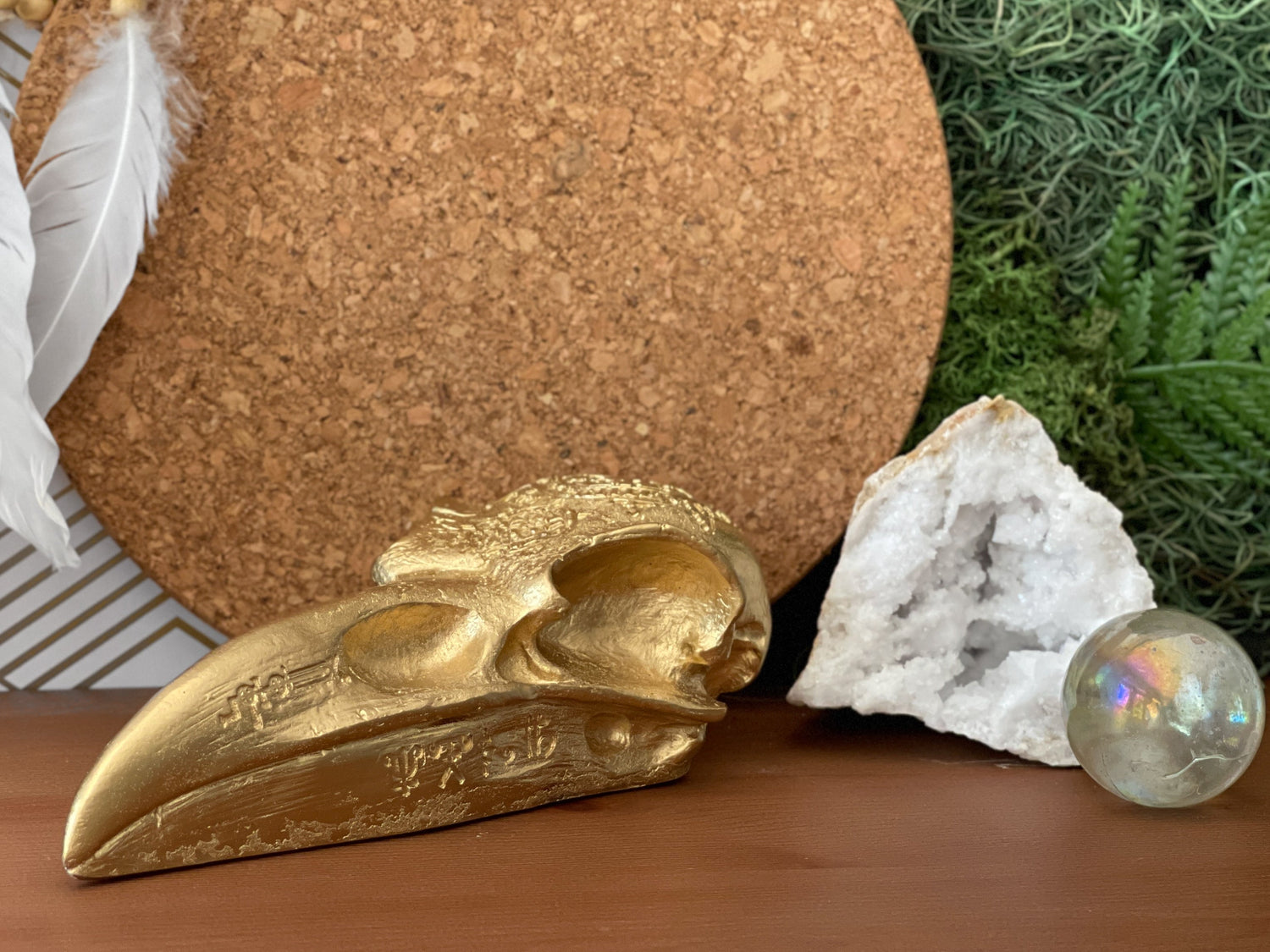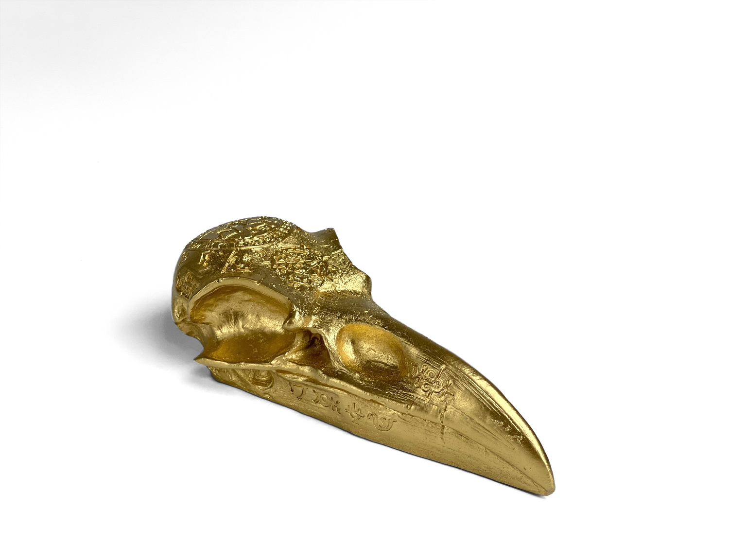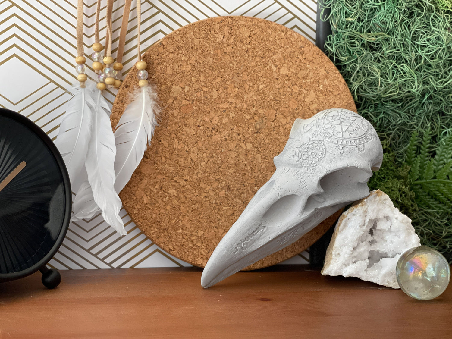To the followers of Mithras, the raven was a symbol of initiation into the deeper mysteries. A sacred talisman to steady the coarse and point the way through life's maelstrom. This decorative high-quality concrete skull is painted by hand and will look amazing sitting anywhere from a living room to a bathroom or bedroom.