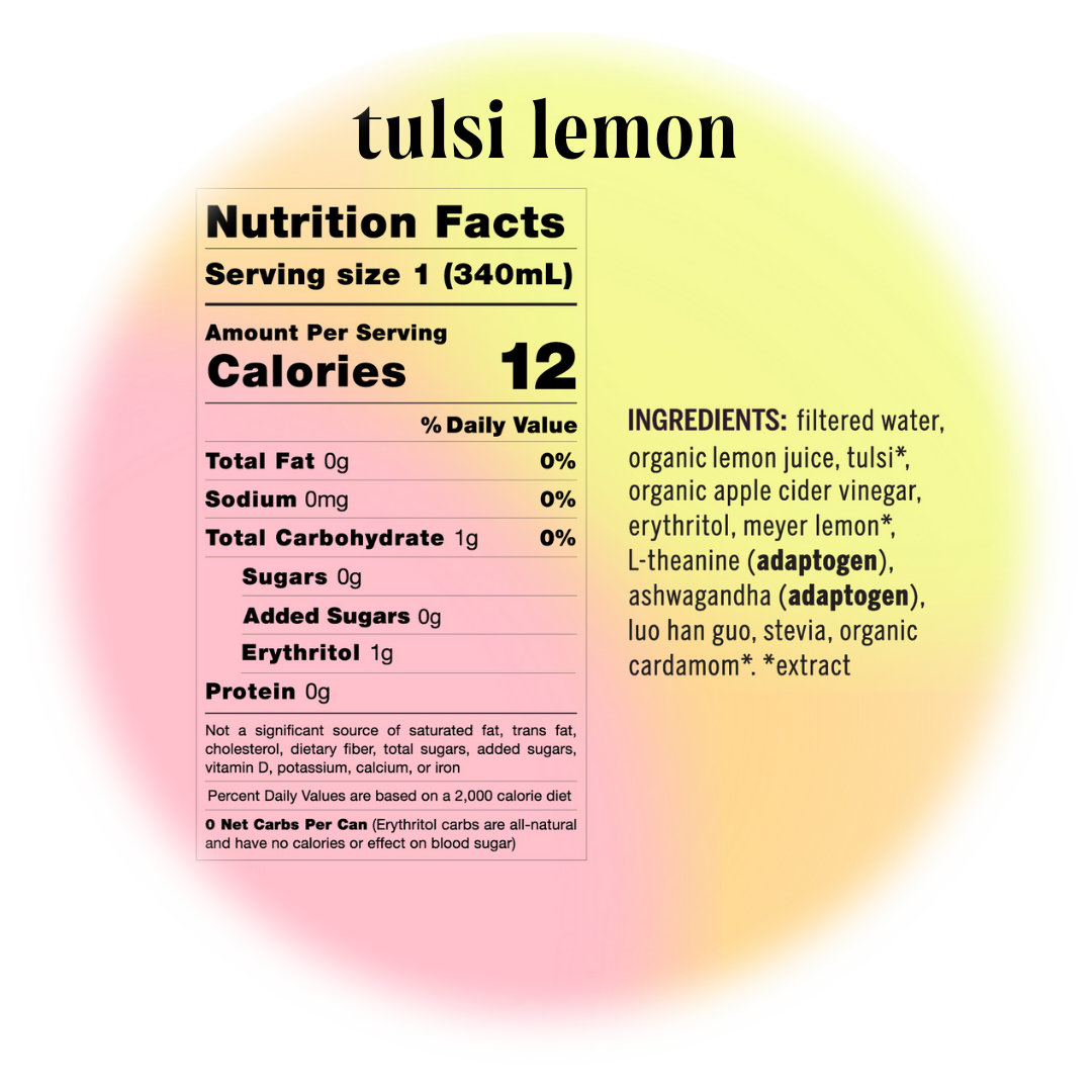 Current flavors: blueberry ginger, tulsi lemon, spiced mango, cherry hibiscus, lychee mint, and Lemon Turmeric.