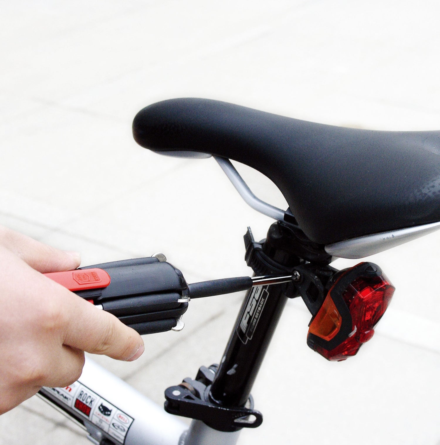 APOLLO TOOLS’ PATENTED Mr. 7-Hands multi-screwdriver has a unique folding arm design. Each arm folds down and clicks as it is tucked within the body of the screwdriver when not in use, and clicks into an upright locked position for use.