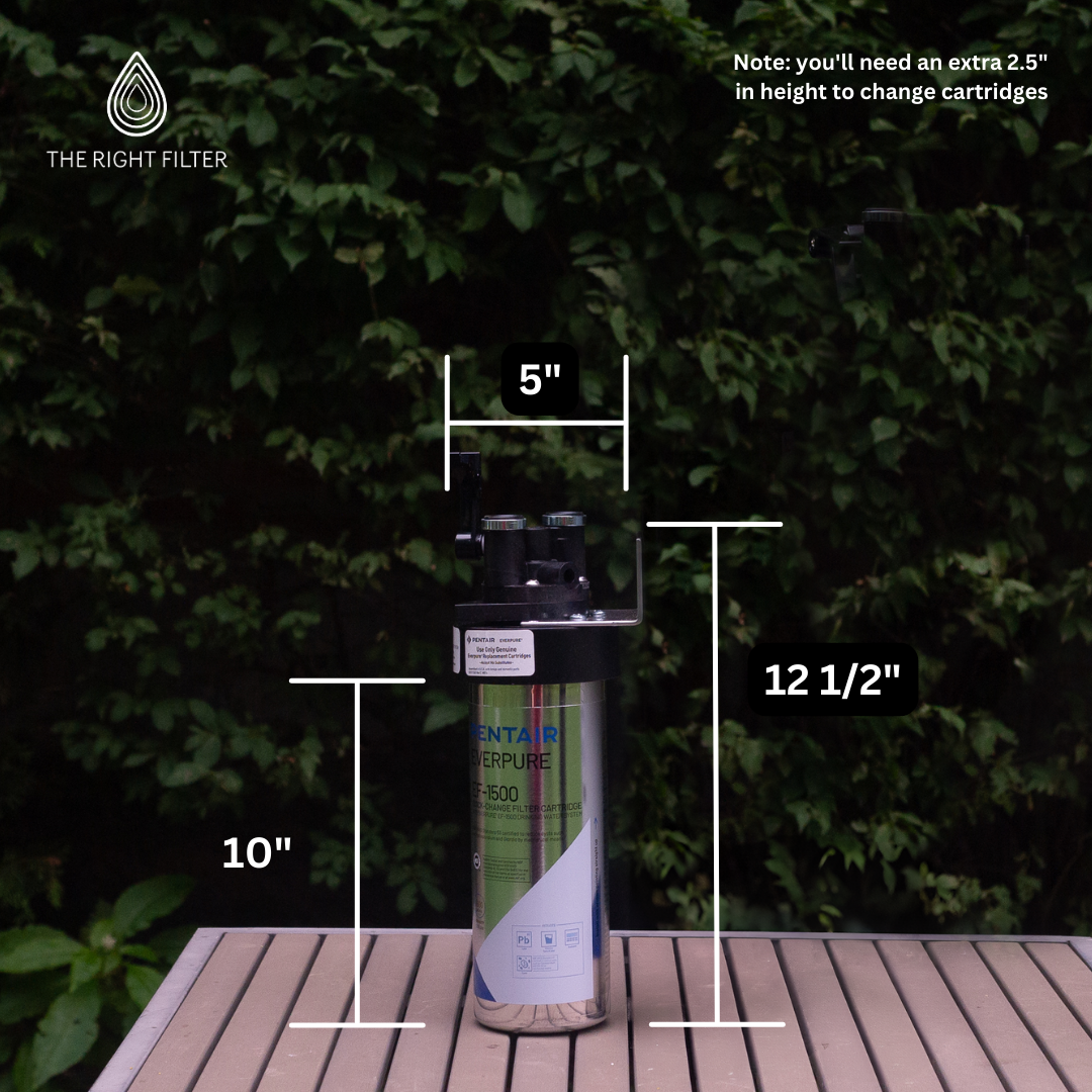 The baby of the Everpure EF series, this wee tiny itty bitty teensy weensy thing filters 1500 gallons before it starts bawling for a change.