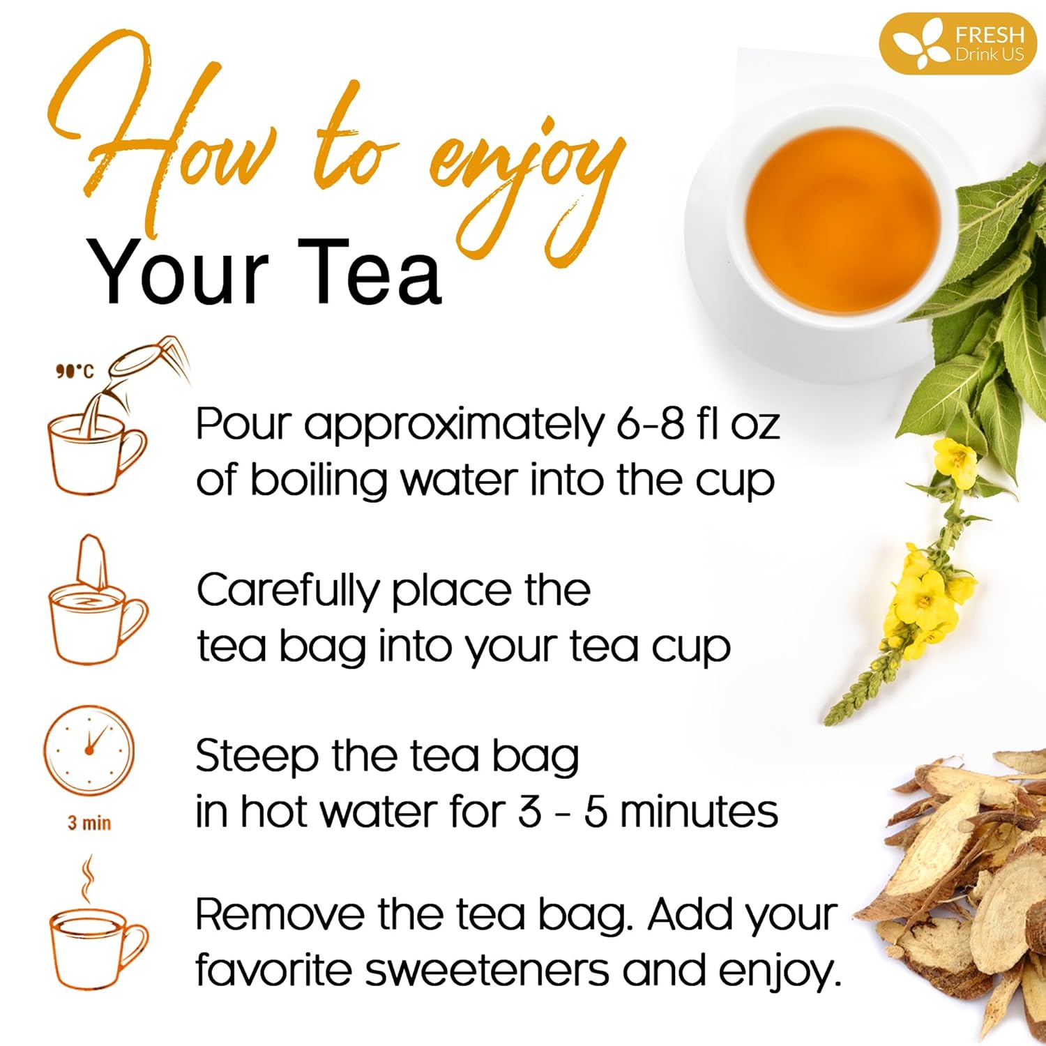 Premium Mullein Licorice Tea Bags. 100% Natural, Blend of Mullein Leaves, and Licorice Root.