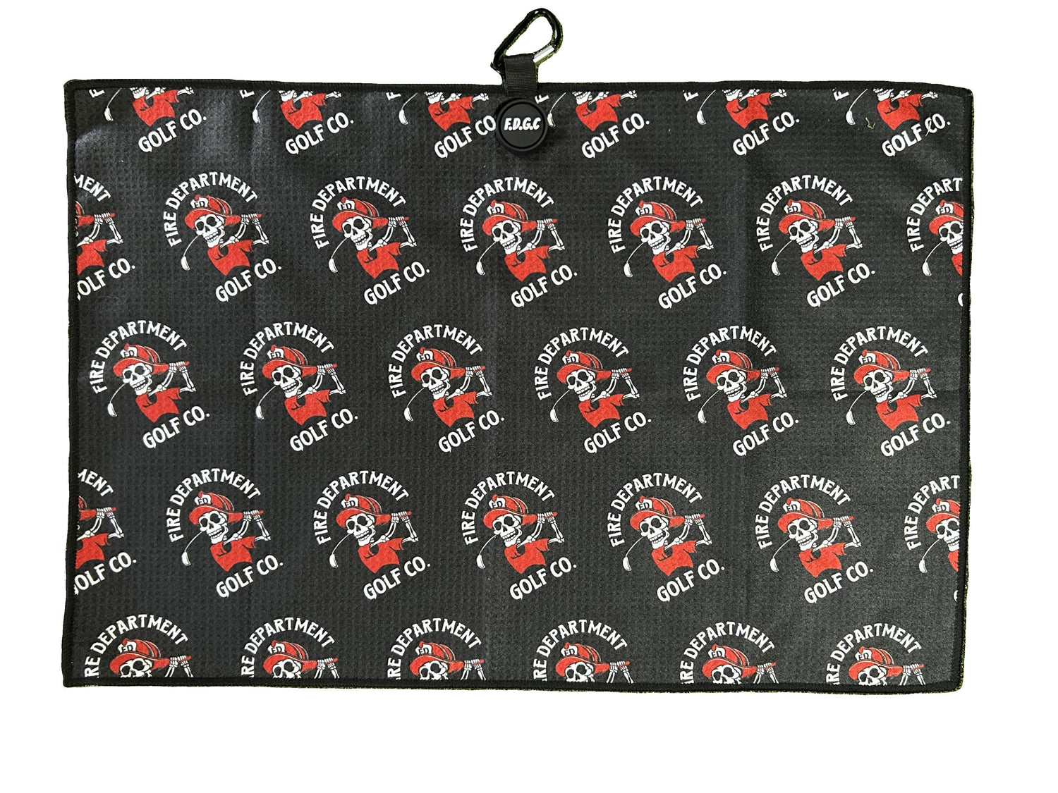 A bold and functional golf towel featuring the Skeleton Swing design, built for firefighters and golf enthusiasts who want convenience and style on the course.