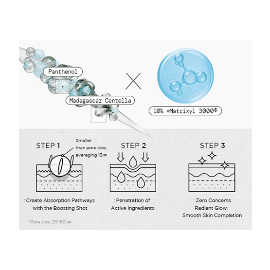 - Spicules infused with Madagascar Centella and Panthenol to nourish the skin and enhance absorption of active ingredients.