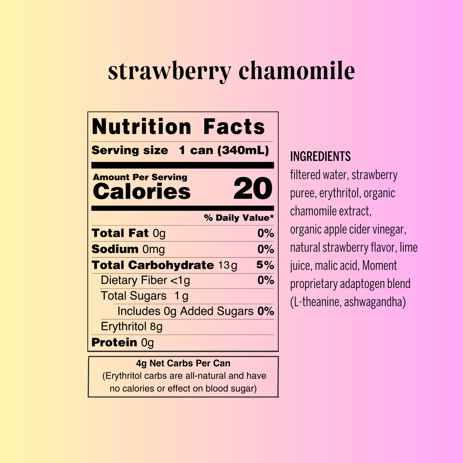 Sweet summer strawberries with subtle floral notes of calming chamomile... Meet your new favorite summer go-to mocktail, without the hangover.