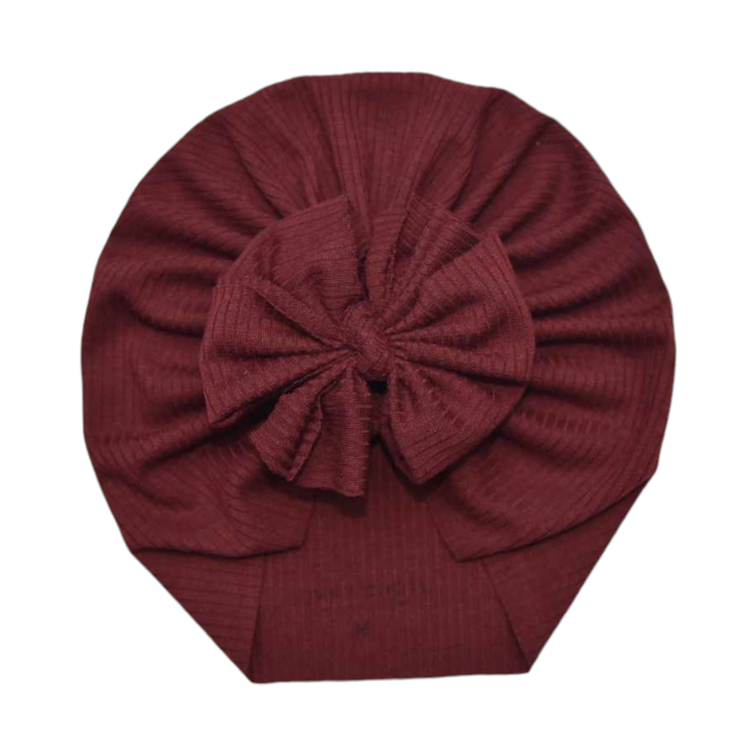 Wynni | Spiced Burgundy | Brushed Rib Headwrap - NB (0-3M) / Raga Bow is backordered and will ship as soon as it is back in stock.